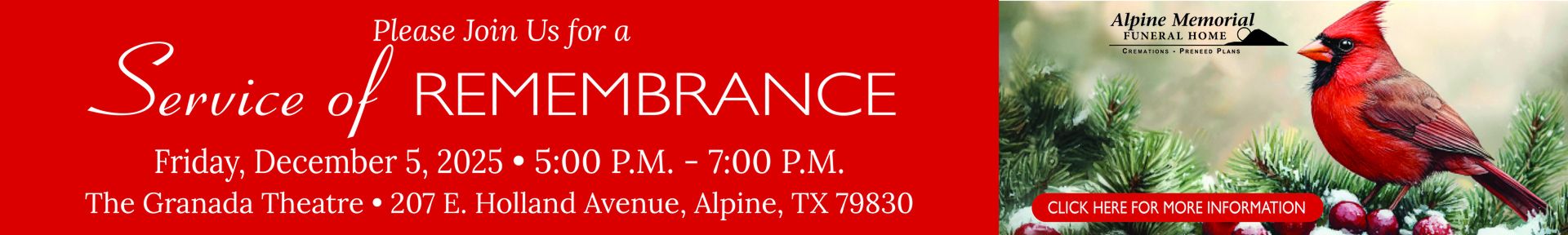 Alpine Memorial Funeral Home has served the Big Bend Area for nearly a century. You will see here at Alpine we truly do care for our families and that it will always be an honor for us to be able to help your family during such difficult times.